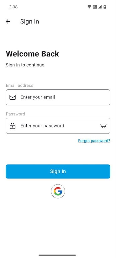 Alternatively, If you have previously registered using the Google, you can sign in with Google by tapping the Google icon at the bottom of the screen.