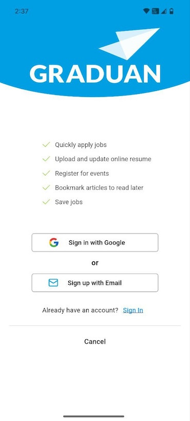 - Tap Sign In from the main sign up screen